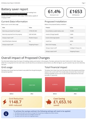 - Calculate how much they could save by charging the battery at cheaper rates.